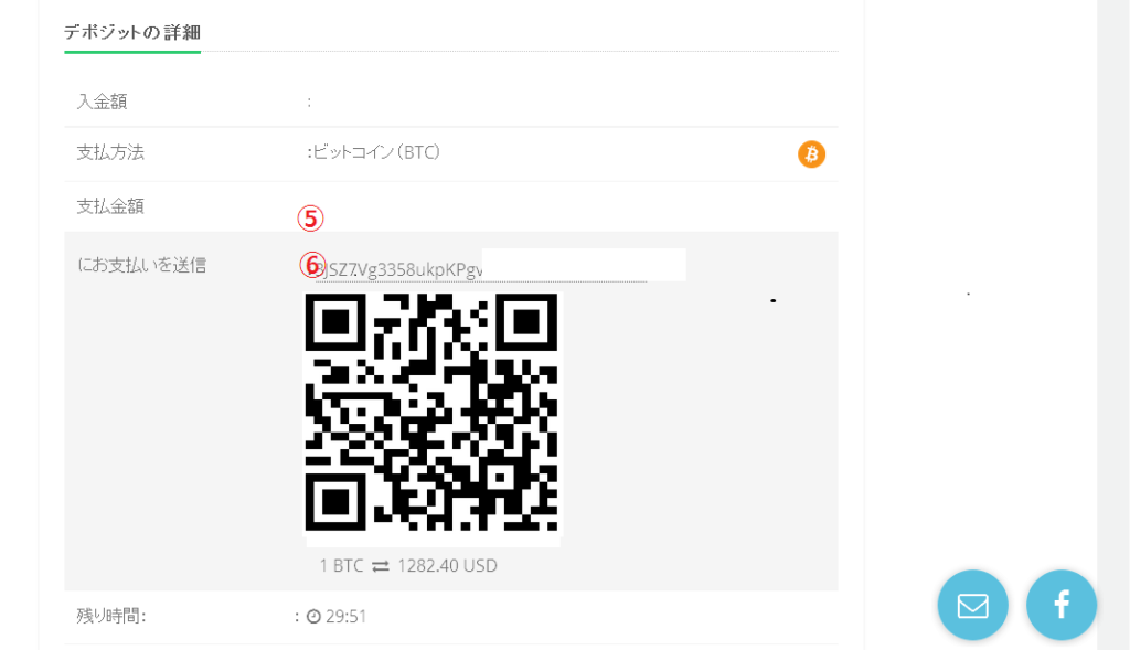 ⑤にはビットコインに換算された金額が現れます