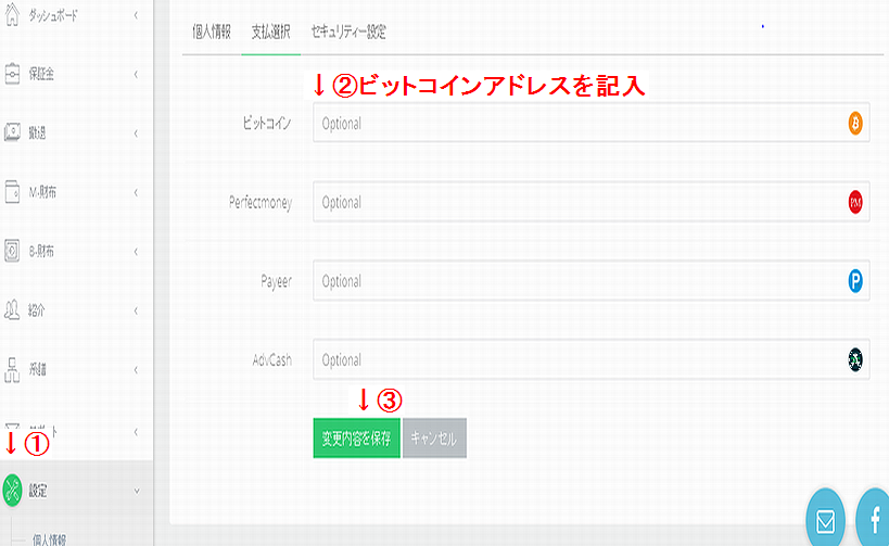 報酬を引き出す為の振込先ウォレットの登録方法です